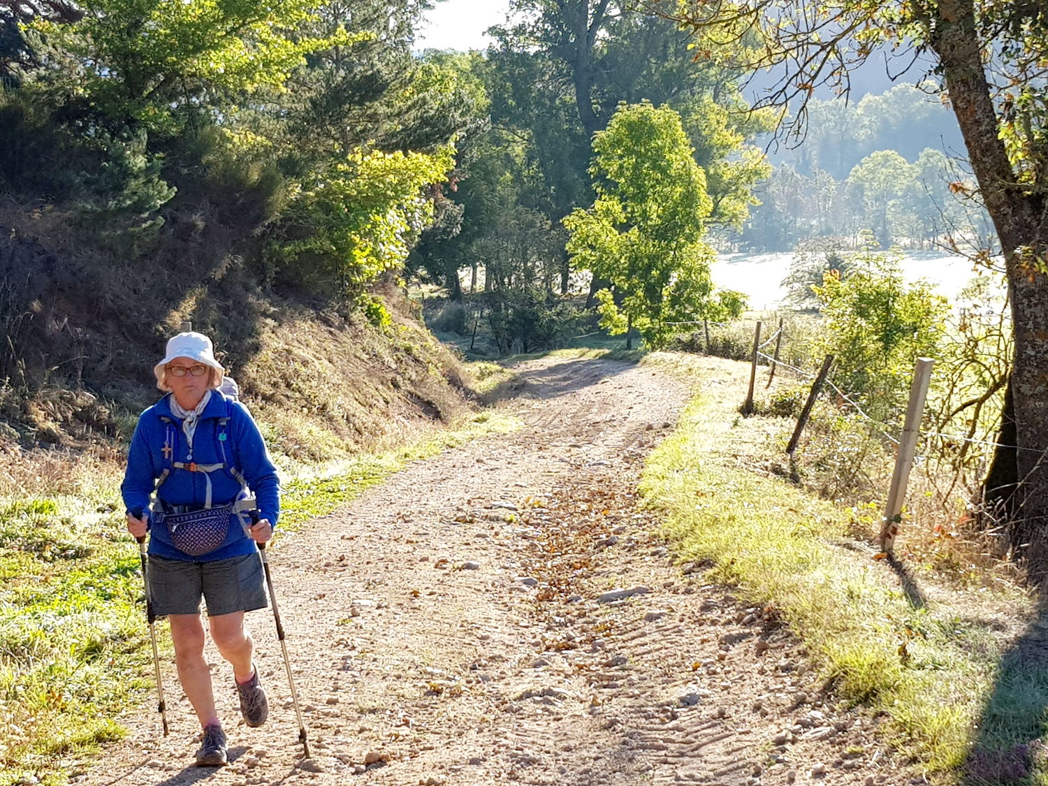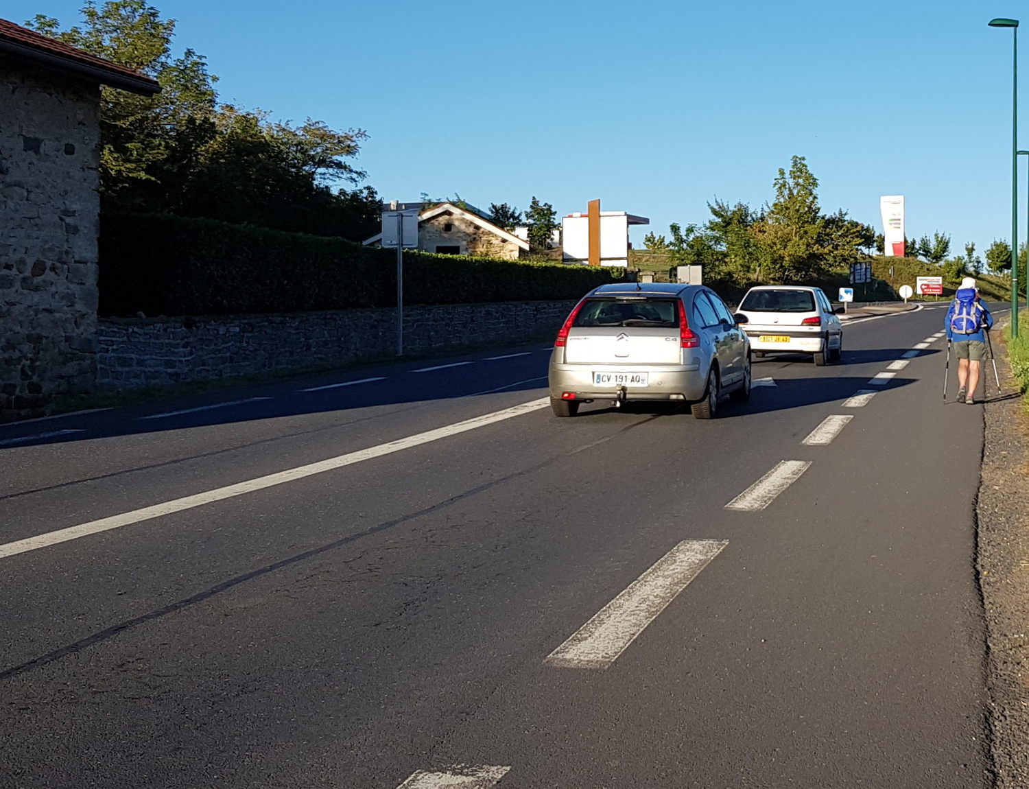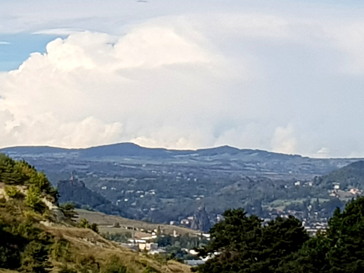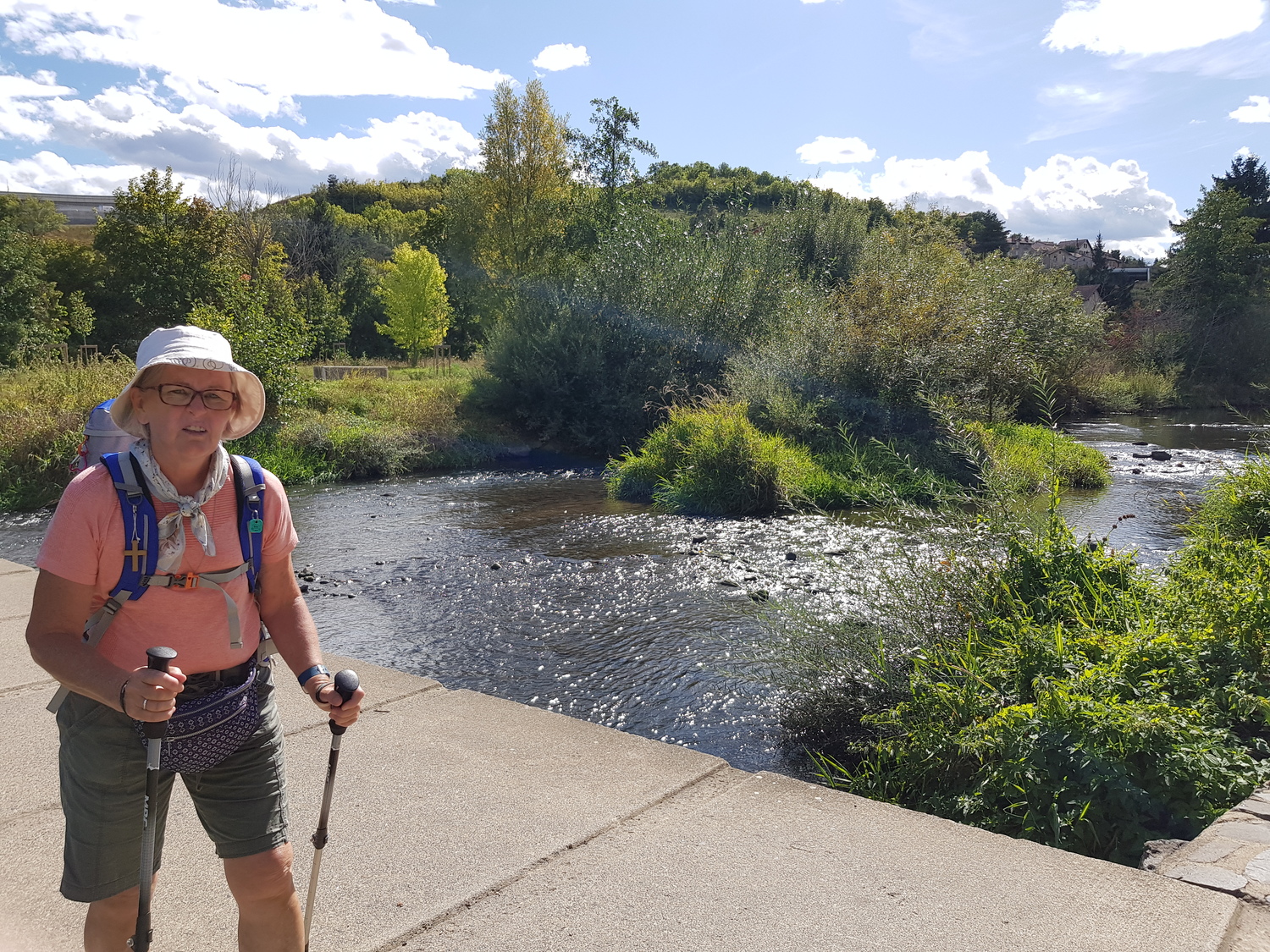 Walking down to Le Puy a storm was brewing and the temperature rose to 30°. Sue's feet were so hot