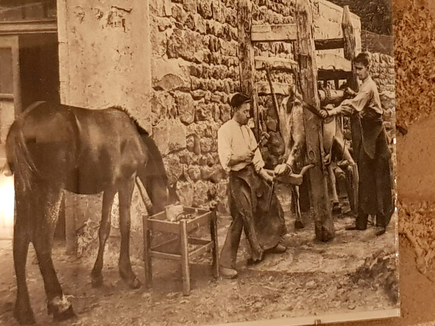we found an old photograph illustrating how the wooden frame for putting shows on bullocks was used.