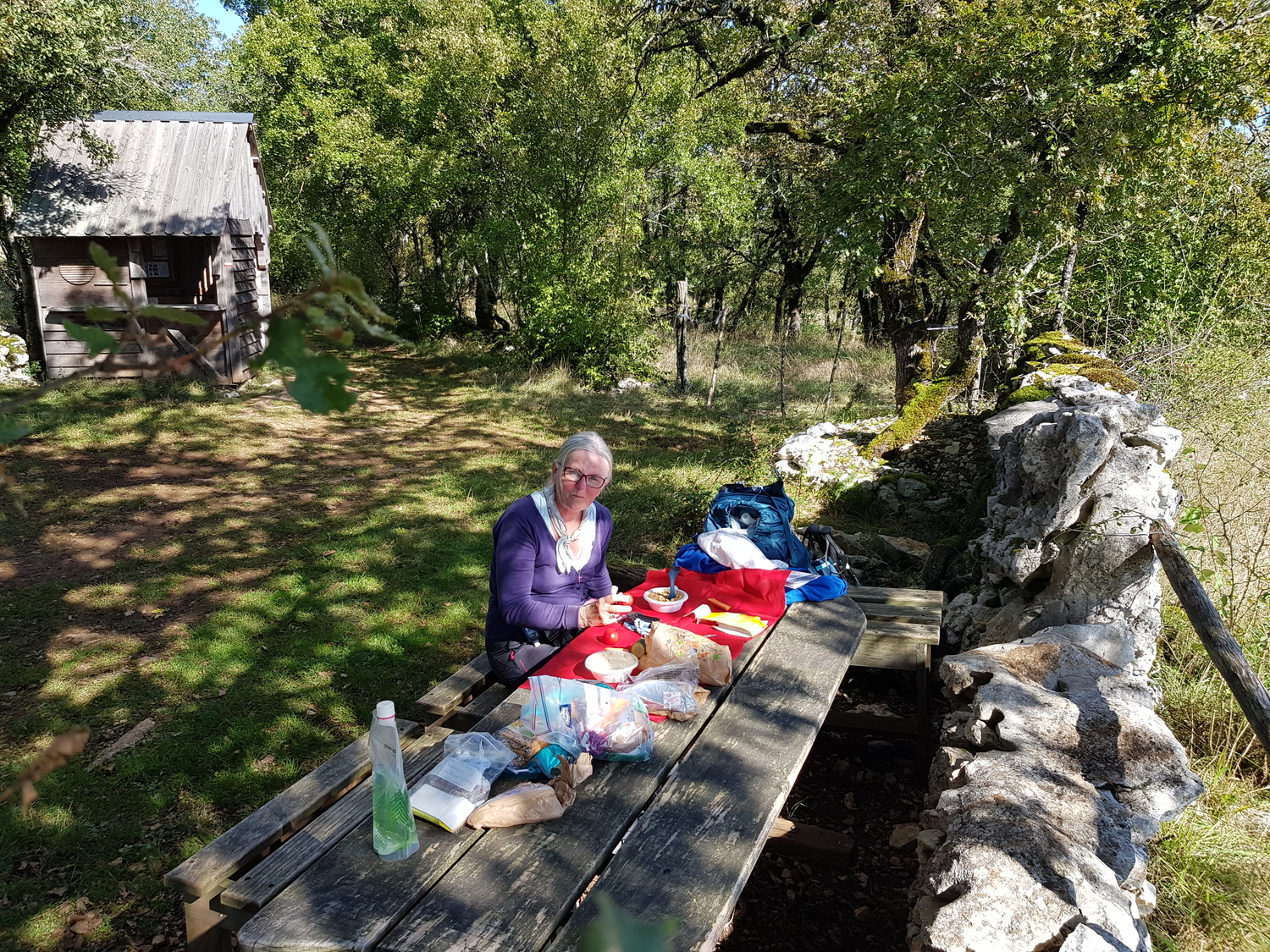After lunch at a picnic place, we wandered through shady paths through woods, under a motorway,