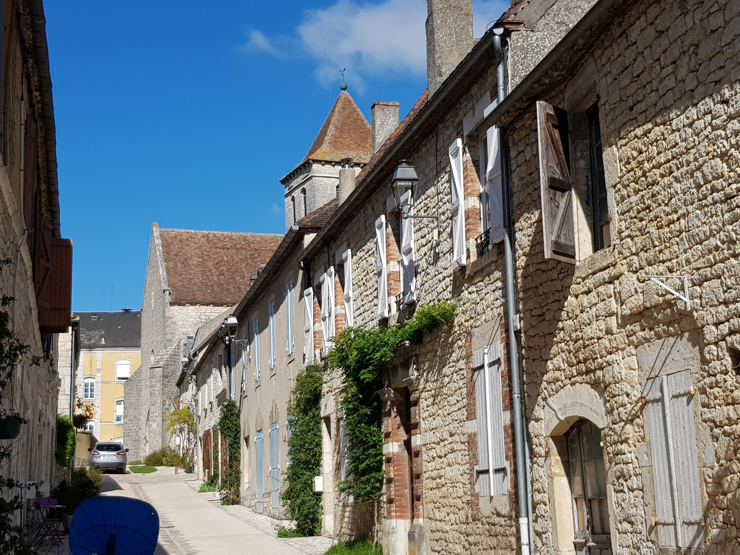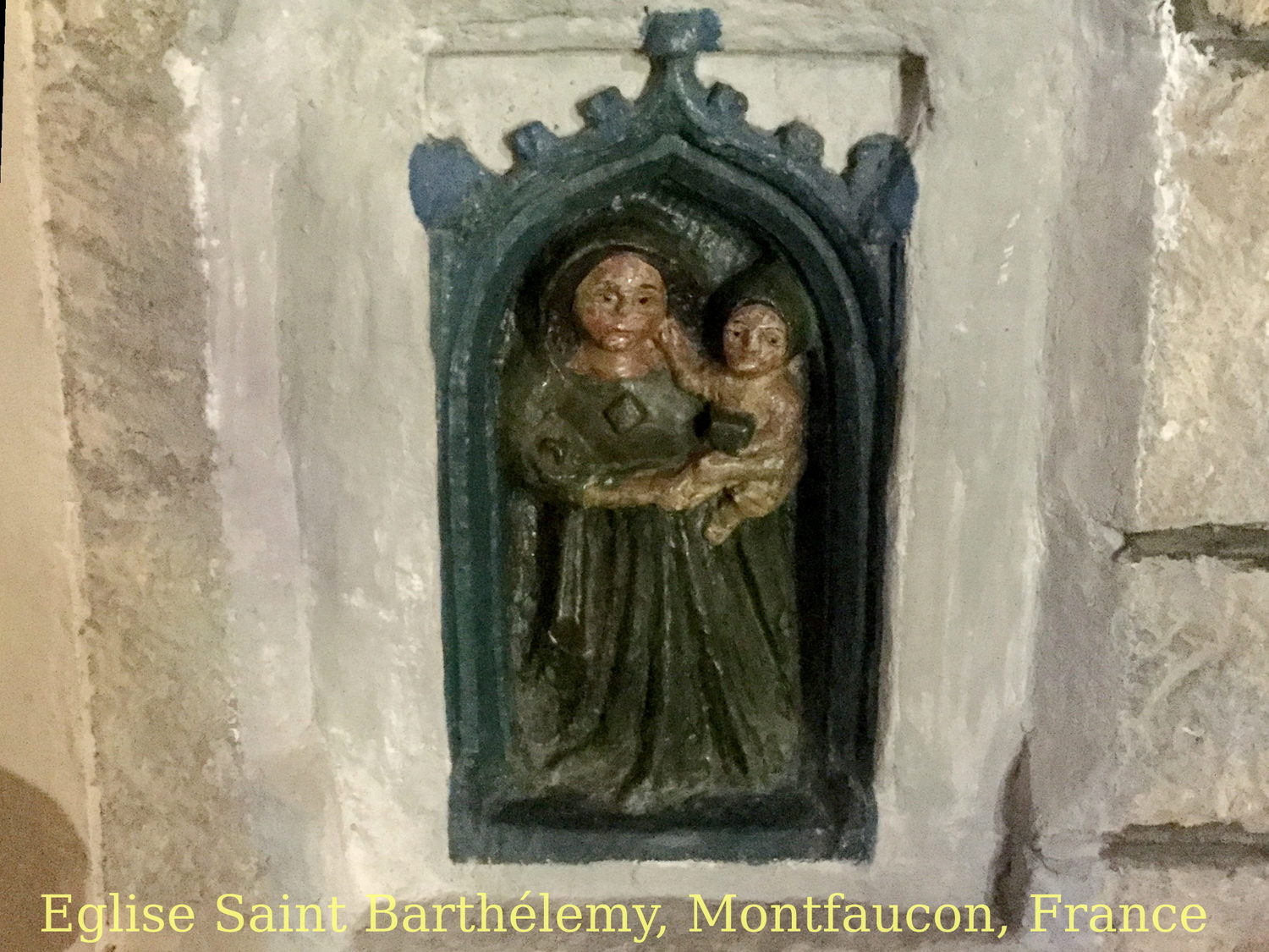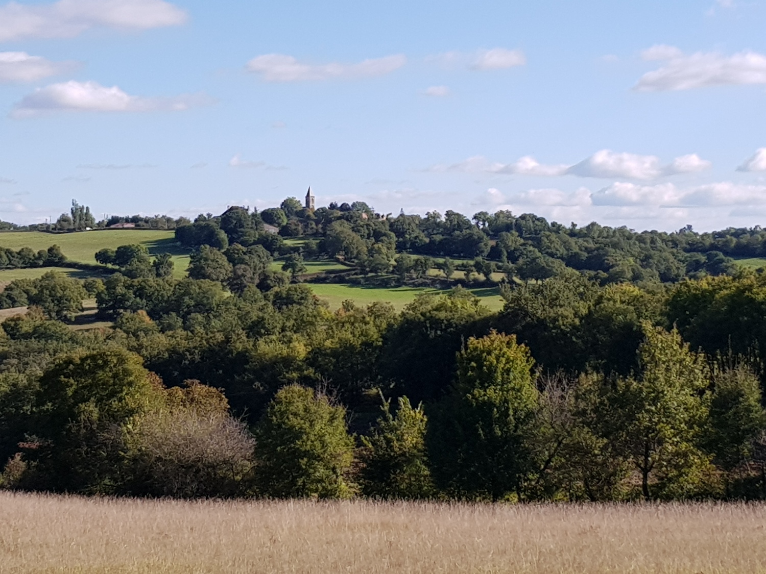 and through the village of Montfaucon, with its church decorations of pilgrim shell and gourd.