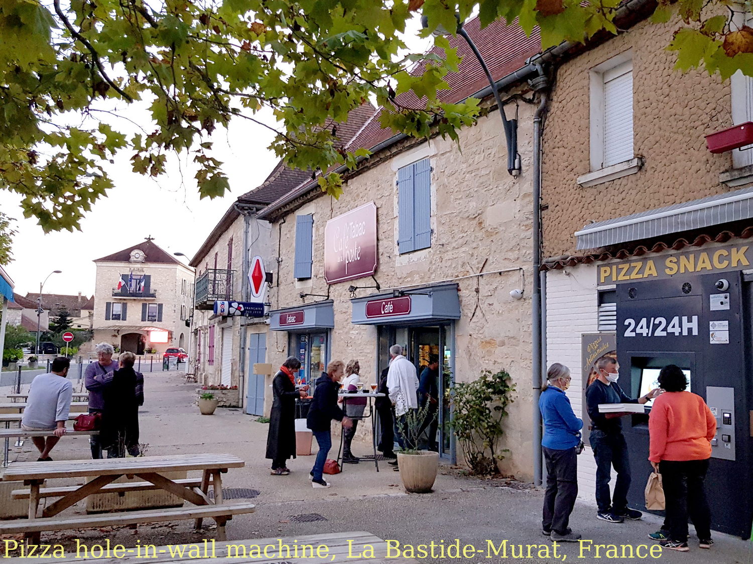 We completed the day by celebrating with a pizza from a machine in a wall and a bottle of Cahors.