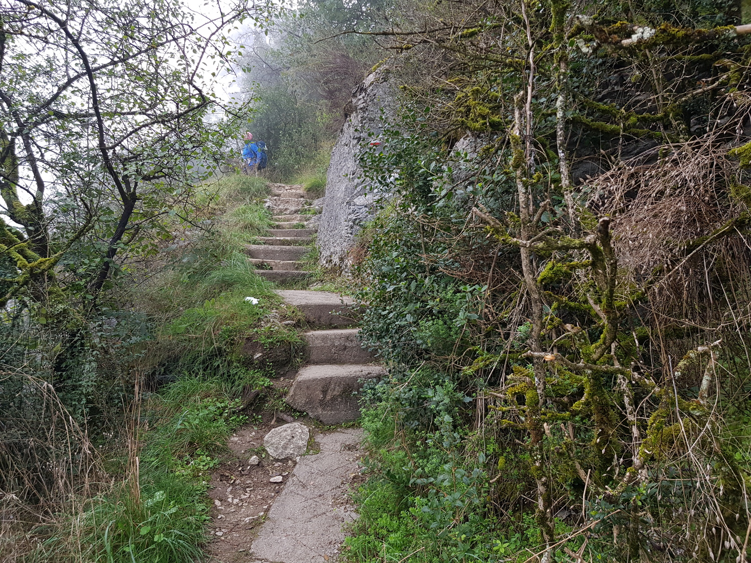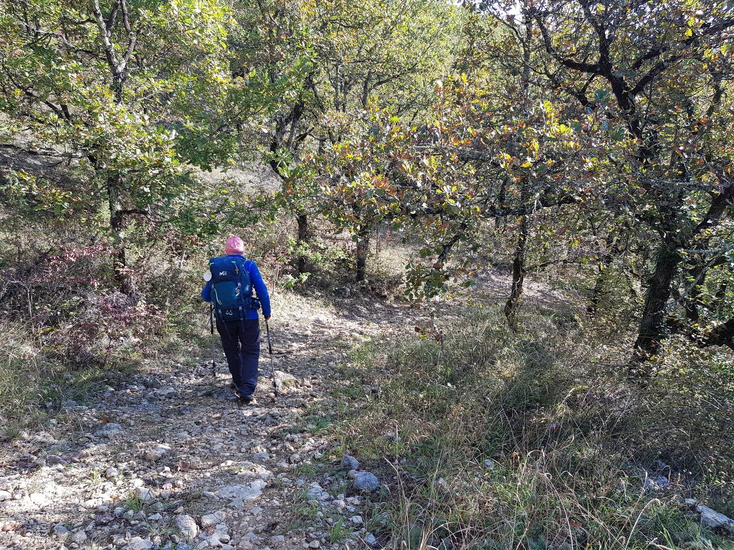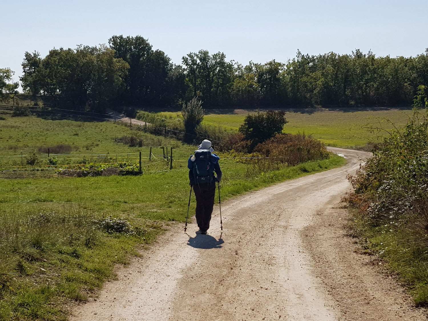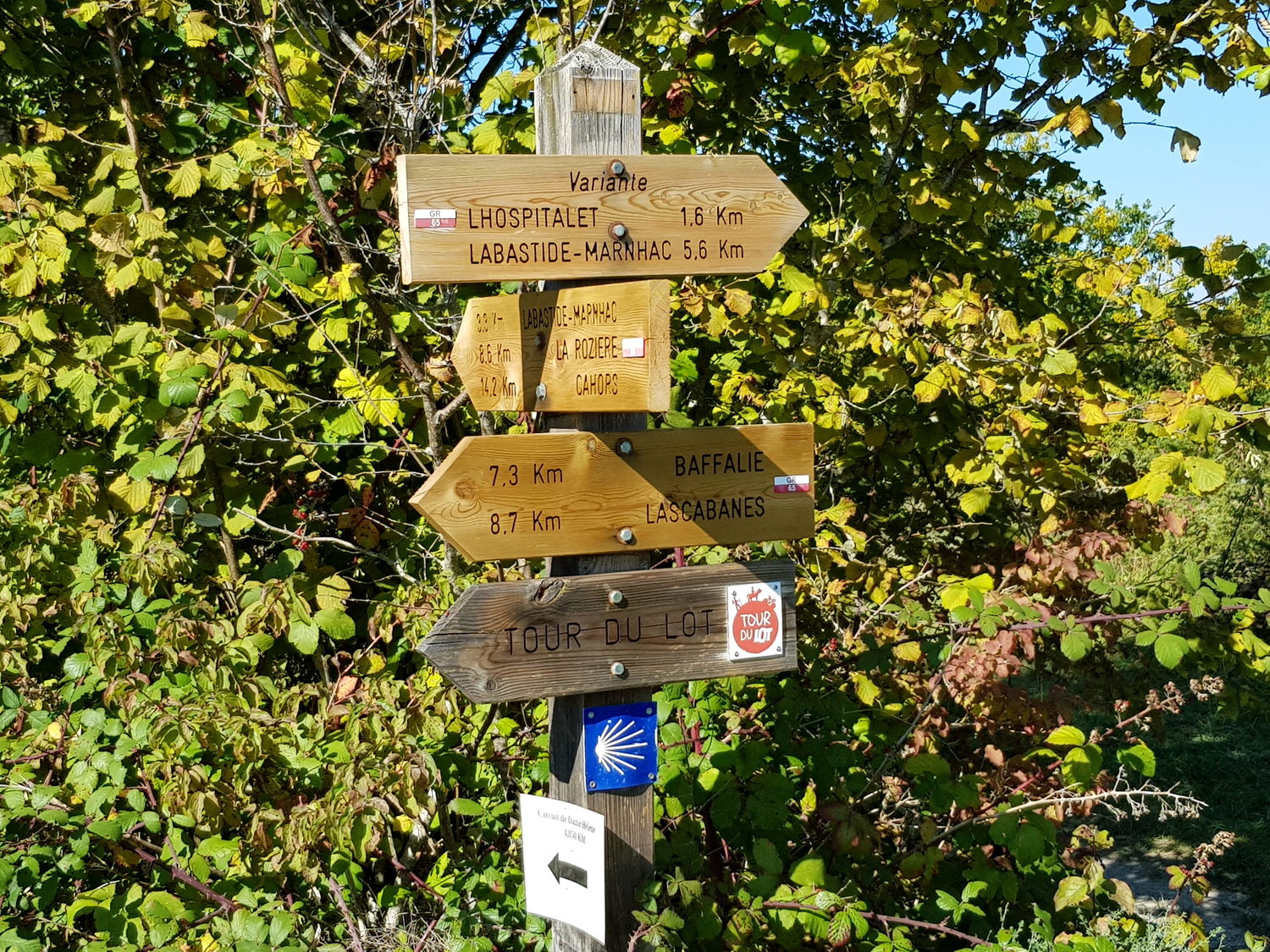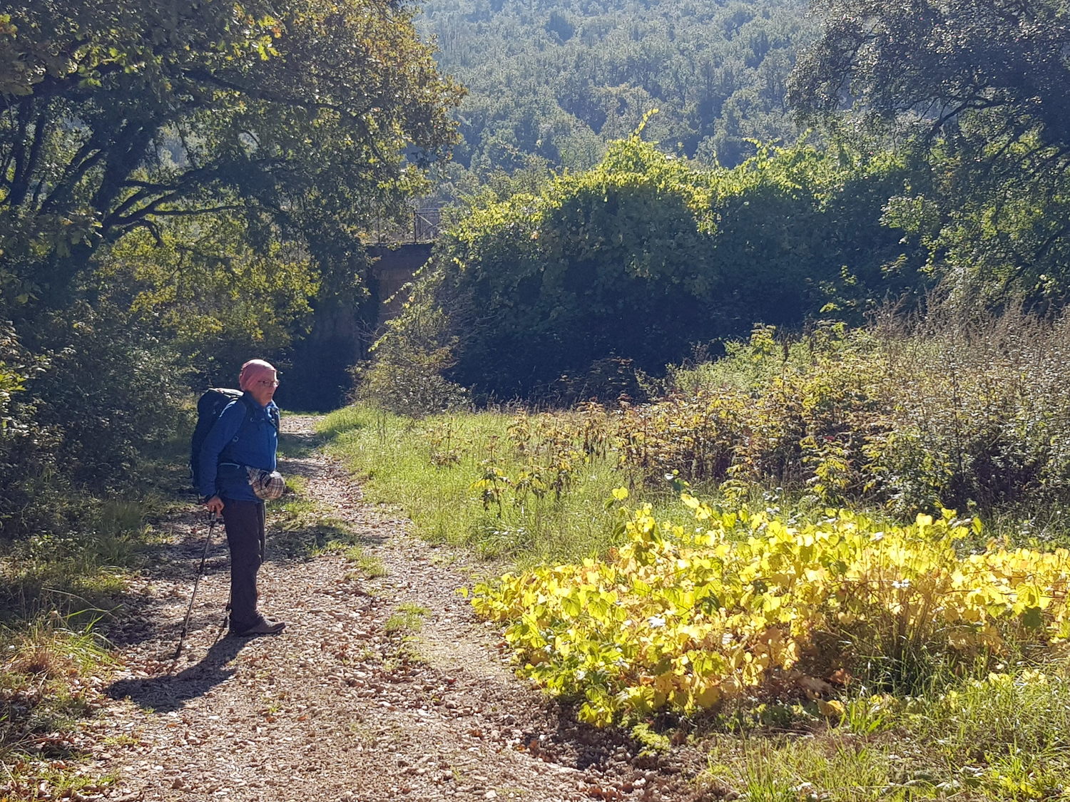 We set off in the fog across the famous 14th century Valentré Bridge and climbed up the steep hillside on the direct route,
