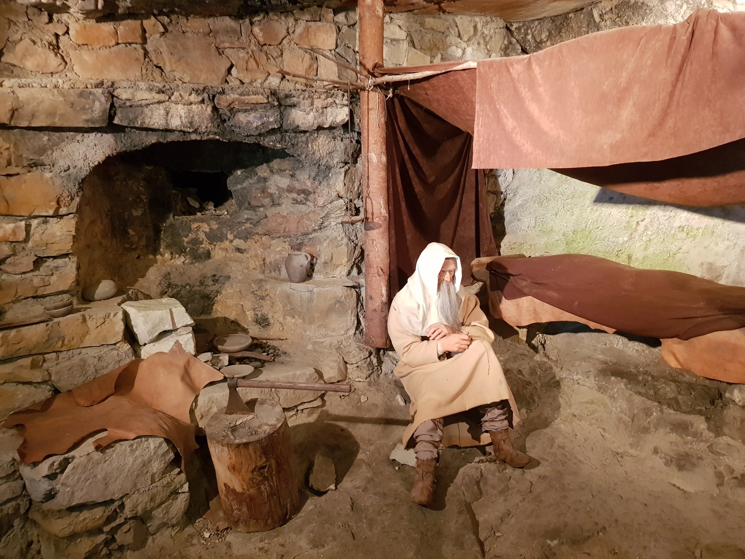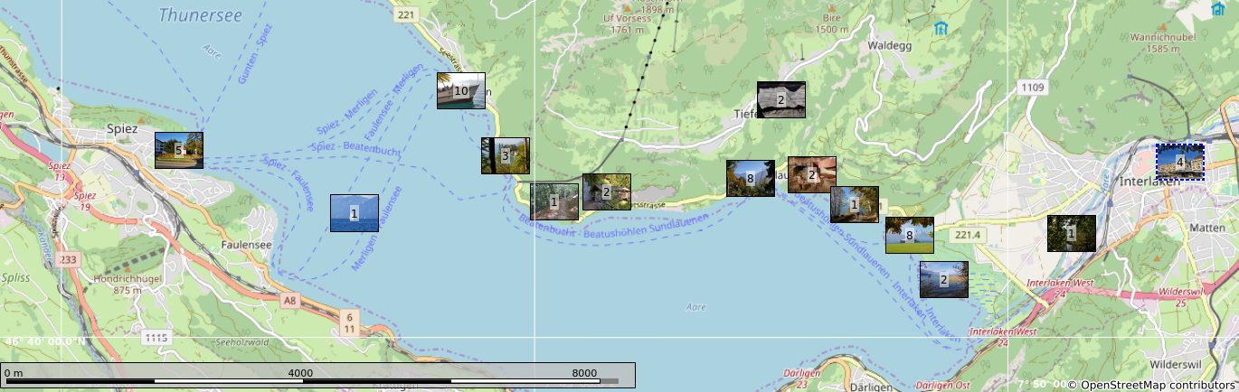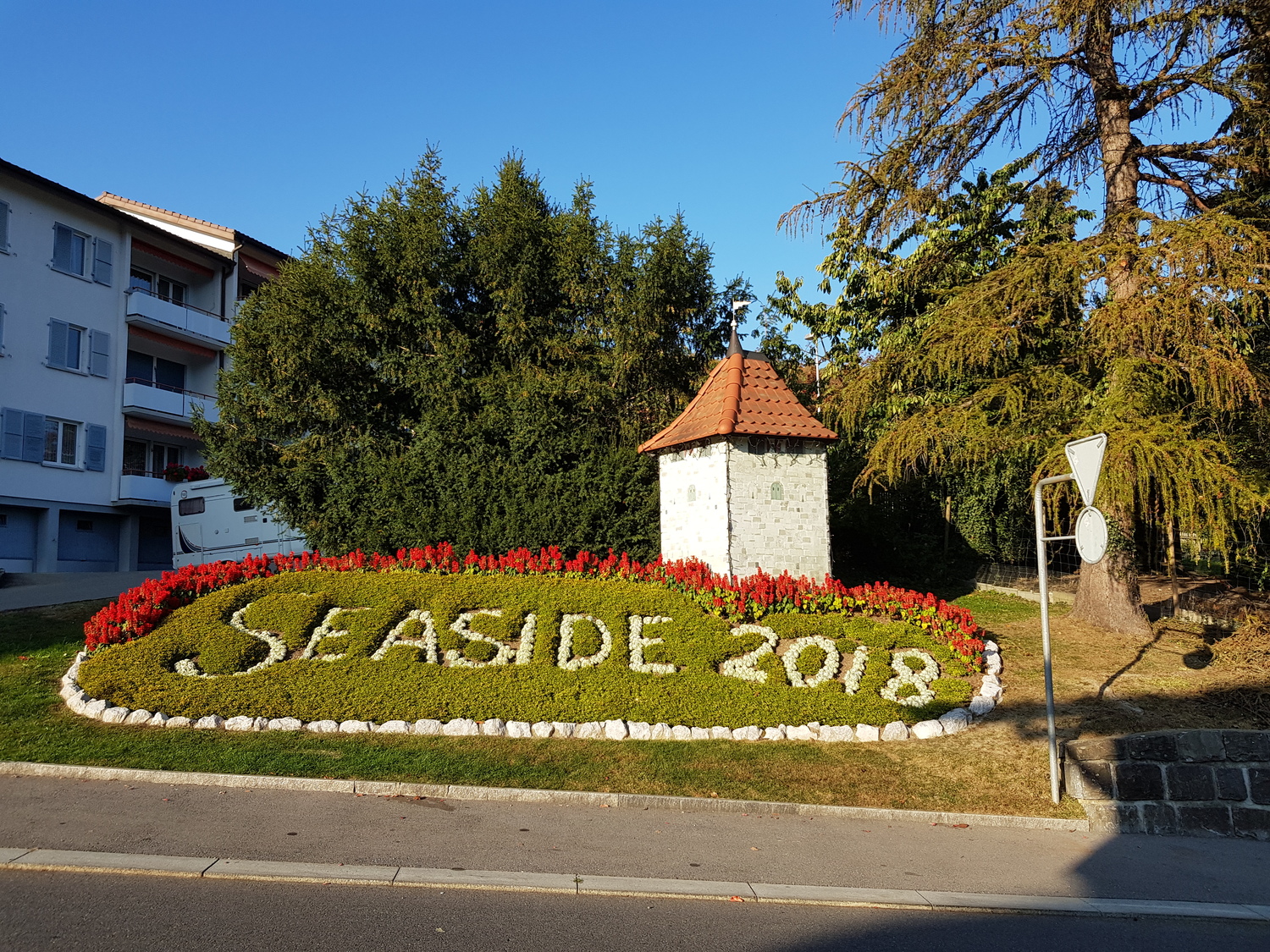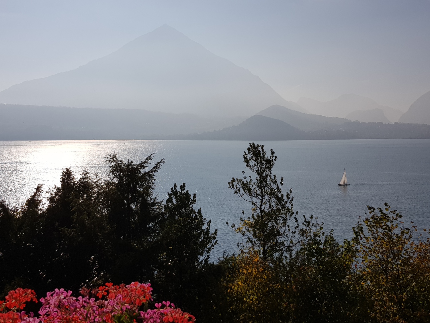 Today we took the train and walked from Interlaken. We walked along the canal and then the lake and it was a lovely walk. Being Sunday, we saw more people than usual. The day started foggy but then cleared to a beautiful blue sky. We passed many dried up streams, and went to Beatus Höhle to look around and get a stamp. After that the path seemed to be very old as the sides were boarded with stones - a very pleasant walk. At Merlingen we took the boat across to Spiez. It would seem that there was a route via Thun but that it has been suspended. From Spiez we took the train home. Now that we are not far from home that we will be able to continue walking to Geneva which, when we started, Sue was not thinking we would be able to manage. The ‘Way’ is now a lot easier.