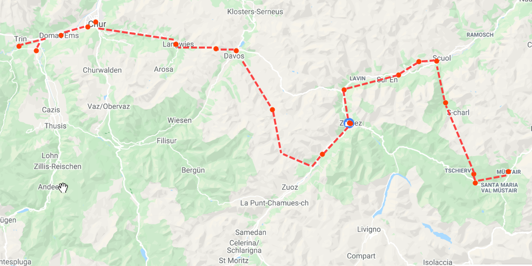and the South Tyrol through the Canton of Graubunden (Grisons) and then through the