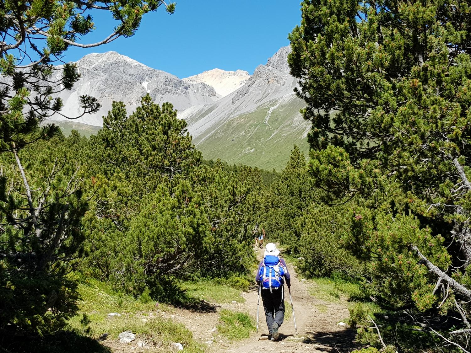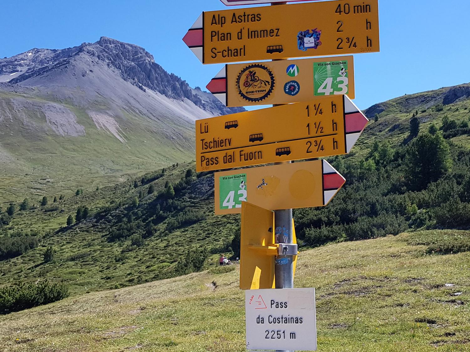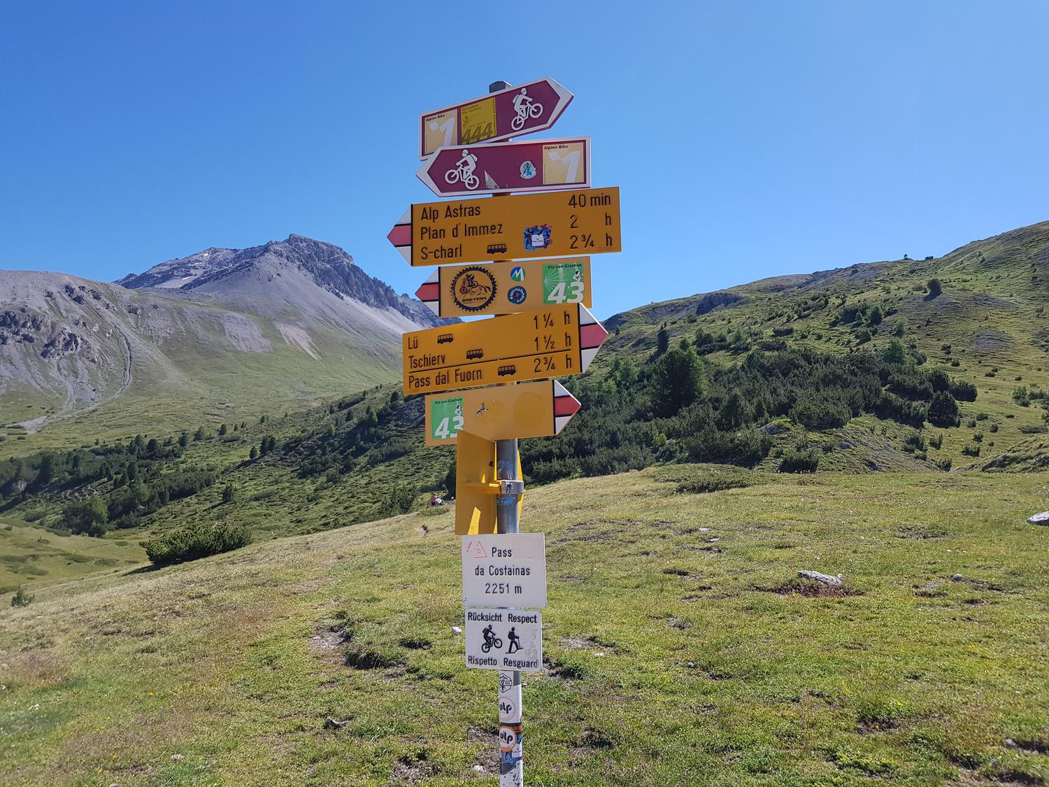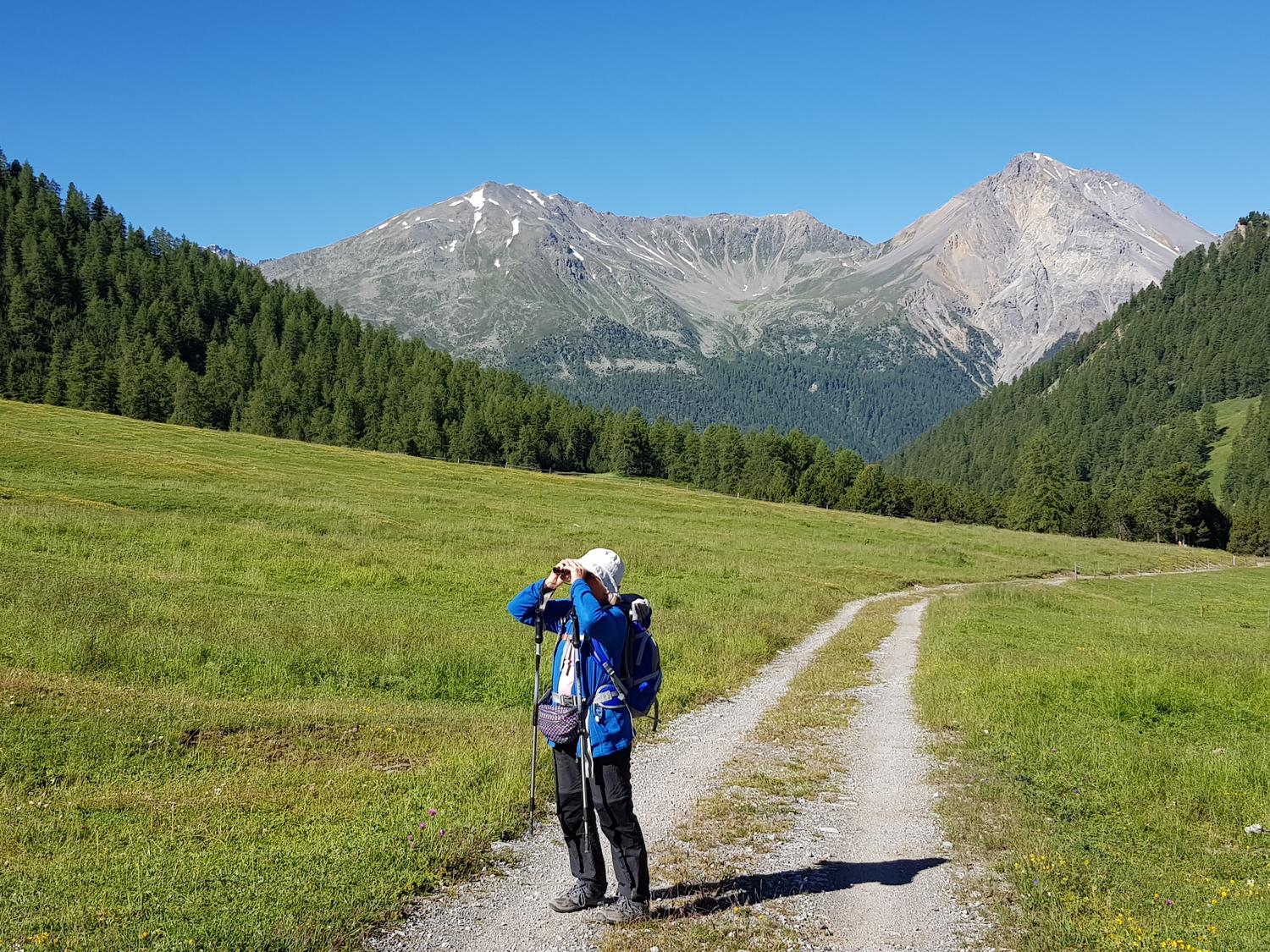 We took the post bus to Lü, with a good view of the Val de Müstair on the way. Leaving Lü, we set off